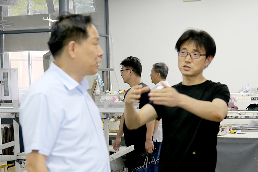 在參觀途中王宏主席與美爾耐公司董事長(zhǎng)毛東雙交流企業(yè)發(fā)展方向