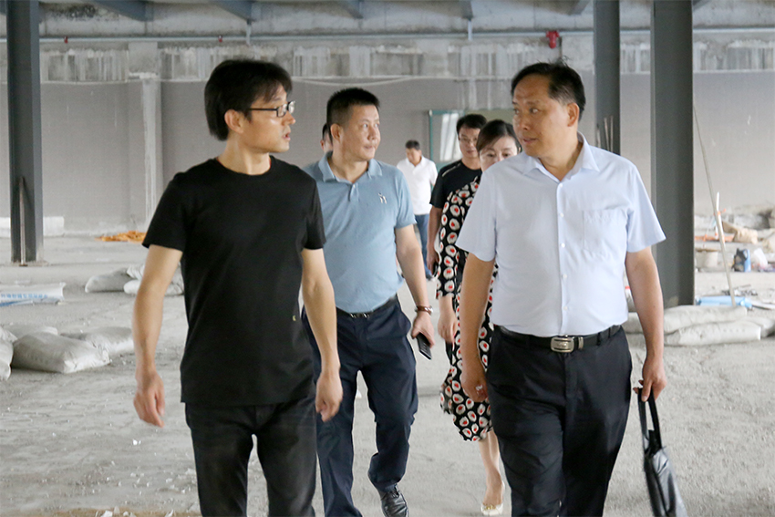 在生產(chǎn)車間參觀時(shí)王宏主席認(rèn)真聽(tīng)取毛東雙董事長(zhǎng)關(guān)于產(chǎn)品的詳細(xì)介紹