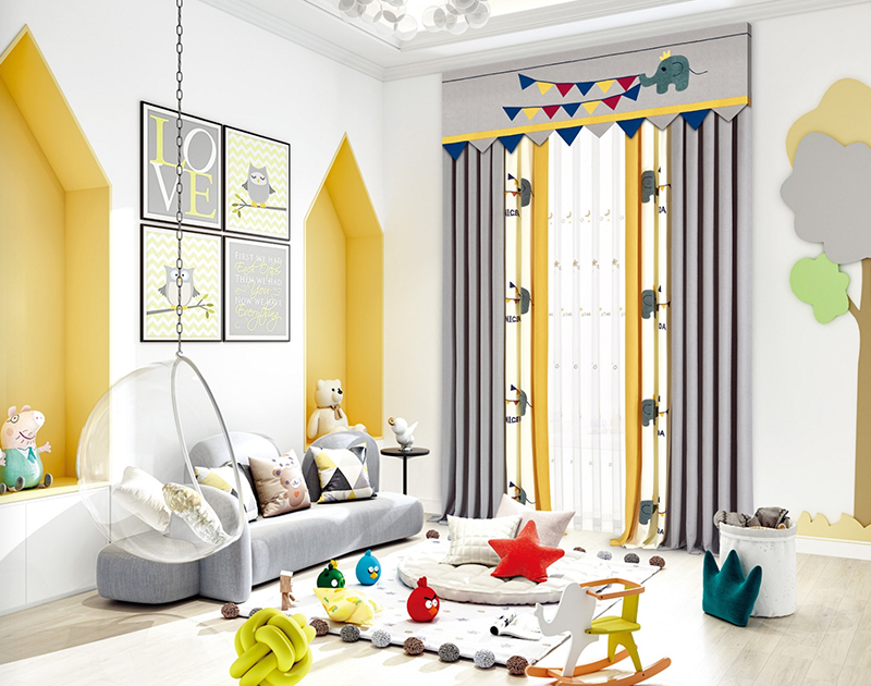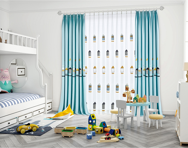 兒童房的窗簾*好選用雙層窗簾,在白天陽(yáng)光過(guò)于充足時(shí),用薄窗簾遮擋,在夜間用厚窗簾,給寶貝一個(gè)安靜的睡眠環(huán)境。