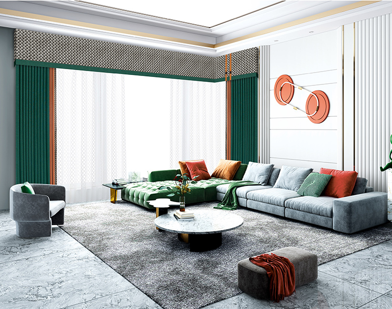 客廳是整個(gè)家居環(huán)境的體現(xiàn),主要承擔(dān)會(huì)客和娛樂(lè)功能,光線好的客廳可以選擇擋光、隔熱功能強(qiáng)的厚棉麻或滌綸材質(zhì)。如果客廳光線被遮擋,就應(yīng)該選擇淺色調(diào)或透光性強(qiáng)一些的輕薄材質(zhì)。
