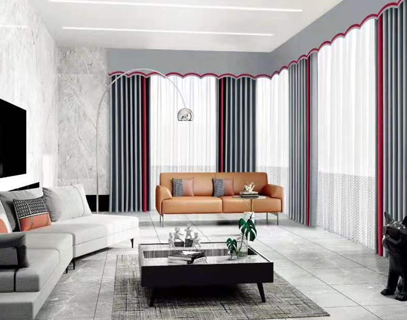 在層高不夠的情況下,房間面積過大,或是在裝修時作了吊頂,都會給人一種壓迫感,最簡單的方法,就是選擇色采強烈的豎條圖案的窗簾,而且盡量不做簾頭,采用素色窗簾,也可以顯得簡單明快,能夠減少壓抑感。此外,可以使用升降簾。