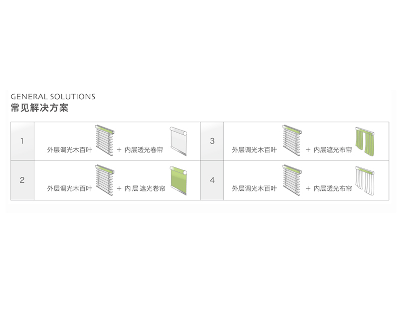 室內(nèi)木百葉:顏色為主要選擇依據(jù);光線調(diào)節(jié)和室內(nèi)裝飾美化為其主要的功能訴求;主要應(yīng)用于酒店客房及住宅臥室;簾片主要寬度為50mm及35mm。